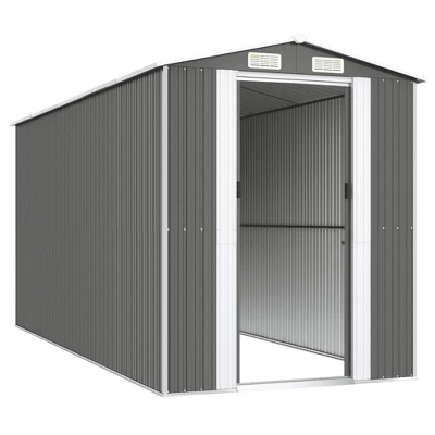 This spacious galvanized steel garden shed is the perfect solution for organizing and protecting your outdoor tools, equipment, and garden supplies. Designed for durability and style, it features a modern light gray finish that complements any outdoor space.