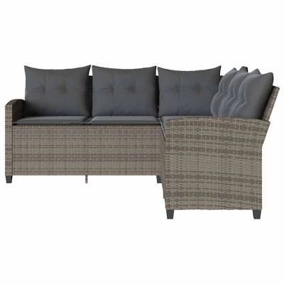 Enjoy relaxing or entertaining outdoors with this L-shaped couch sofa, designed for your garden, patio, or backyard. The set is crafted from durable poly rattan (PE rattan), a weather-resistant synthetic material that offers the look of natural rattan with the added benefits of being lightweight, easy to clean, and low maintenance.