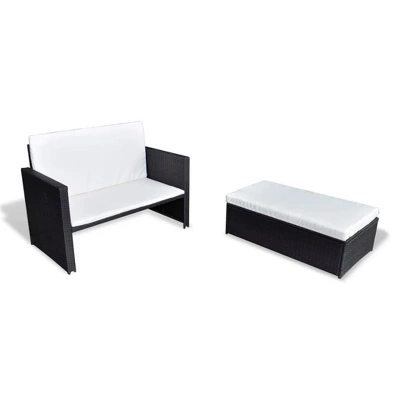 This modern outdoor sofa blends style with practical use, making it a great addition to any balcony or patio. Its sleek black poly rattan finish and comfy cushions invite you to relax while elevating your outdoor decor.