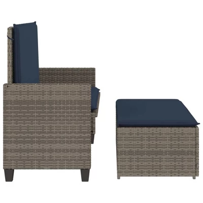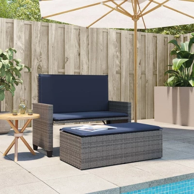 This versatile 2-in-1 patio bench with cushions and a footstool is a practical and stylish addition to any outdoor living space. Available in Black, Brown, and Gray, it offers flexible seating and lounging options for your patio, garden, or balcony.