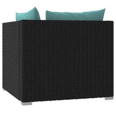 This Contemporary 2-Seater Modular Sofa, dressed in sleek black poly rattan, is the ideal addition to your home or patio. With a modern vibe, its smooth surface gives off a sophisticated feel while providing comfy seating for up to two people—perfect for cozy catch-ups or relaxation.